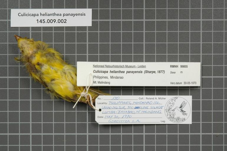 | Keywords: Naturalis Biodiversity Center - RMNH.AVES.99855 1 - Culicicapa helianthea panayensis (Sharpe, 1877) - Muscicapidae - bird skin specimen.jpeg artwork Dimensions artwork Document type Muscicapidae Culicicapa Individual count 1 Infraspecific epithet panayensis Infraspecific rank Institution Naturalis Kind of unit artwork Kind of unit specimen skin Life stage Philippines Mindanao Isl Lanao Del Sur Lumba-Bayabao Mt Malindang 300 Line Siwagat Medium artwork Nomenclatural code Occurrence ID page Other fields Other versions artwork Permission license Naturalis donation CC-0 Publication location Scientific name Culicicapa helianthea panayensis Sharpe 1877 Scientific name authorship Sharpe 1877 male Source url http //bioportal naturalis nl Specific epithet helianthea State or province Subject keywords artwork Subject keywords publication Title artwork Title publication Type status Uploaded with GWToolset Naturalis_Biodiversity_Center_-_RMNH AVES 99855_1_-_Culicicapa_helianthea_panayensis_ Sharpe _1877 _-_Muscicapidae_-_bird_skin_specimen http //medialib naturalis nl/file/id/RMNH AVES 99855_1/format/large Media donated by Naturalis Biodiversity Center Songbird specimens at Naturalis Biodiversity Center Culicicapa helianthea museum specimens |