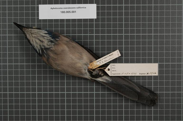 | Keywords: Naturalis Biodiversity Center - RMNH.AVES.8926 2 - Aphelocoma coerulescens californica (Vigors, 1839) - Corvidae - bird skin specimen.jpeg artwork Dimensions artwork Document type Corvidae Aphelocoma Individual count 1 Infraspecific epithet californica Infraspecific rank Institution Naturalis Kind of unit artwork Kind of unit specimen skin Life stage United States California Medium artwork Nomenclatural code General remarks unreadable info on lael Locality remark unreadable Occurrence ID page Other fields Other versions artwork Permission license Naturalis donation CC-0 Publication location Scientific name Aphelocoma coerulescens californica Vigors 1839 Scientific name authorship Vigors 1839 male Source url http //bioportal naturalis nl Specific epithet coerulescens State or province California Subject keywords artwork Subject keywords publication Title artwork Title publication Type status Uploaded with GWToolset Naturalis_Biodiversity_Center_-_RMNH AVES 8926_2_-_Aphelocoma_coerulescens_californica_ Vigors _1839 _-_Corvidae_-_bird_skin_specimen http //medialib naturalis nl/file/id/RMNH AVES 8926_2/format/large Media donated by Naturalis Biodiversity Center Songbird specimens at Naturalis Biodiversity Center Aphelocoma californica museum specimens |