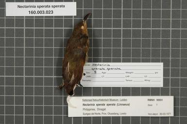 Keywords: Naturalis Biodiversity Center - RMNH.AVES.99931 1 - Nectarinia sperata sperata (Linnaeus, 1766) - Nectariniidae - bird skin specimen.jpeg artwork Dimensions artwork Document type Nectariniidae Nectarinia Individual count 1 Infraspecific epithet sperata Infraspecific rank Institution Naturalis Kind of unit artwork Kind of unit specimen skin Life stage Philippines Surigao del Norte Prov Oluasdang Dinagat ID Loreto Medium artwork Nomenclatural code Occurrence ID page Other fields Other versions artwork Permission license Naturalis donation CC-0 Publication location Scientific name Nectarinia sperata sperata Linnaeus 1766 Scientific name authorship Linnaeus 1766 female Source url http //bioportal naturalis nl Specific epithet sperata State or province Surigao del Norte Prov Oluasdang Dinagat ID Subject keywords artwork Subject keywords publication Title artwork Title publication Type status Uploaded with GWToolset Naturalis_Biodiversity_Center_-_RMNH AVES 99931_1_-_Nectarinia_sperata_sperata_ Linnaeus _1766 _-_Nectariniidae_-_bird_skin_specimen http //medialib naturalis nl/file/id/RMNH AVES 99931_1/format/large Media donated by Naturalis Biodiversity Center Songbird specimens at Naturalis Biodiversity Center Leptocoma sperata