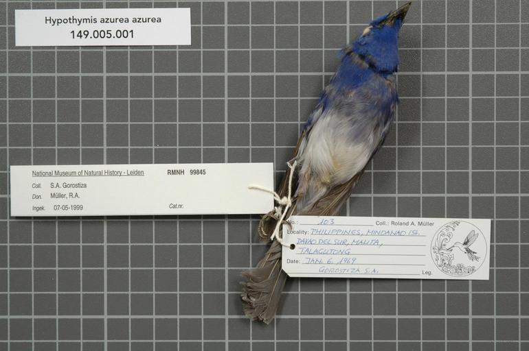 Keywords: Naturalis Biodiversity Center - RMNH.AVES.99845 2 - Hypothymis azurea azurea (Boddaert, 1783) - Monarchidae - bird skin specimen.jpeg artwork Dimensions artwork Document type Monarchidae Hypothymis Individual count 1 Infraspecific epithet azurea Infraspecific rank Institution Naturalis Kind of unit artwork Kind of unit specimen skin Life stage Philippines Mindanao Isl Davao del Sur Malita Talagutong Medium artwork Nomenclatural code Occurrence ID page Other fields Other versions artwork Permission license Naturalis donation CC-0 Publication location Scientific name Hypothymis azurea azurea Boddaert 1783 Scientific name authorship Boddaert 1783 male Source url http //bioportal naturalis nl Specific epithet azurea State or province Subject keywords artwork Subject keywords publication Title artwork Title publication Type status Uploaded with GWToolset Naturalis_Biodiversity_Center_-_RMNH AVES 99845_2_-_Hypothymis_azurea_azurea_ Boddaert _1783 _-_Monarchidae_-_bird_skin_specimen http //medialib naturalis nl/file/id/RMNH AVES 99845_2/format/large Media donated by Naturalis Biodiversity Center Songbird specimens at Naturalis Biodiversity Center Hypothymis azurea azurea