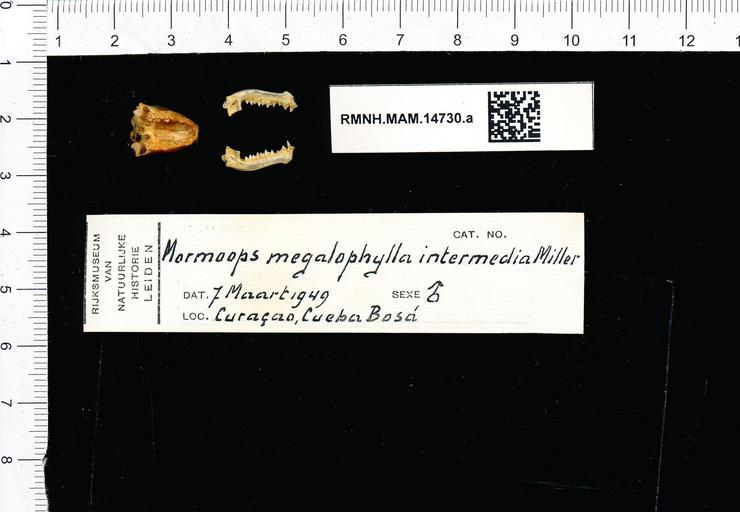 | Keywords: Naturalis Biodiversity Center - RMNH.MAM.14730.a pal - Mormoops megalophylla intermedia - skull.jpeg artwork Dimensions artwork Document type Mormoops Individual count 1 Infraspecific epithet intermedia Infraspecific rank Institution Naturalis Kind of unit artwork Kind of unit specimen skull Life stage Curaçao Cueba Bosá Medium artwork Nomenclatural code Occurrence ID page Other fields Other versions artwork Permission license Naturalis donation CC-0 Publication location Scientific name Mormoops megalophylla intermedia Scientific name authorship male Source url http //bioportal naturalis nl Specific epithet megalophylla State or province Subject keywords artwork Subject keywords publication Title artwork Title publication Type status Uploaded with GWToolset Naturalis_Biodiversity_Center_-_RMNH MAM 14730 a_pal_-_Mormoops_megalophylla_intermedia_-_skull http //medialib naturalis nl/file/id/RMNH MAM 14730 a_pal/format/large Media donated by Naturalis Biodiversity Center Mammals at Naturalis from the Rijksmuseum van Natuurlijke Historie Mormoops megalophylla Mormoops |