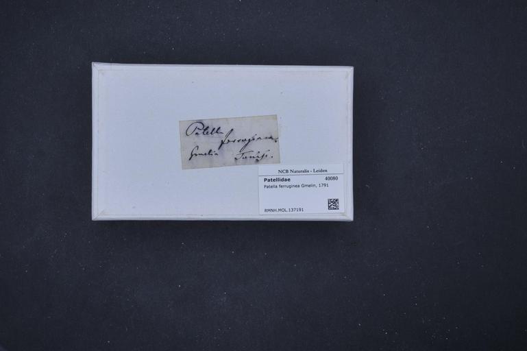 Keywords: Naturalis Biodiversity Center - RMNH.MOL.137191 1 - Patella ferruginea Gmelin, 1791 - Patellidae - Mollusc shell.jpeg artwork Dimensions artwork Document type Patellidae subfamily Patellinae Patella Individual count Infraspecific epithet Infraspecific rank Institution Naturalis Kind of unit artwork Kind of unit specimen shell Life stage Medium artwork Nomenclatural code Source institute Leiden Scale the width of the text on the species/QR-code label is 38 mm Occurrence ID page Other fields Other versions artwork Permission license Naturalis donation CC-0 Mollusca Publication location Scientific name Patella ferruginea Gmelin 1791 Scientific name authorship Gmelin 1791 Source url http //bioportal naturalis nl Specific epithet ferruginea State or province Subject keywords artwork Subject keywords publication Title artwork Title publication Type status Uploaded with GWToolset Naturalis_Biodiversity_Center_-_RMNH MOL 137191_1_-_Patella_ferruginea_Gmelin _1791_-_Patellidae_-_Mollusc_shell http //medialib naturalis nl/file/id/RMNH MOL 137191_1/format/large Molluscs at Naturalis from the Rijksmuseum van Natuurlijke Historie Media donated by Naturalis Biodiversity Center Patella mollusc Patella ferruginea |