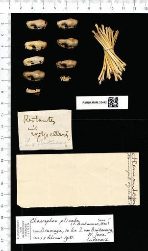 Keywords: Naturalis Biodiversity Center - RMNH.MAM.33442 lat - Chaerephon plicatus - skull.jpeg artwork Dimensions artwork Document type Chaerephon Individual count 8 Infraspecific epithet Infraspecific rank Institution Naturalis Kind of unit artwork Kind of unit specimen skull Life stage Dramaga 10 km Z can Buitenzorg W Java Indonesia Medium artwork Nomenclatural code Occurrence ID page Other fields Other versions artwork Permission license Naturalis donation CC-0 Publication location Scientific name Chaerephon plicatus Scientific name authorship Source url http //bioportal naturalis nl Specific epithet plicatus State or province Subject keywords artwork Subject keywords publication Title artwork Title publication Type status Uploaded with GWToolset Naturalis_Biodiversity_Center_-_RMNH MAM 33442_lat_-_Chaerephon_plicatus_-_skull http //medialib naturalis nl/file/id/RMNH MAM 33442_lat/format/large Media donated by Naturalis Biodiversity Center Mammals at Naturalis from the Rijksmuseum van Natuurlijke Historie Chaerephon plicatus |
