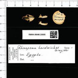 Keywords: Naturalis Biodiversity Center - RMNH.MAM.35888 pal - Rhinopoma hardwickii - skull.jpeg artwork Dimensions artwork Document type Rhinopoma Individual count 1 Infraspecific epithet Infraspecific rank Institution Naturalis Kind of unit artwork Kind of unit specimen skull Life stage Medium artwork Nomenclatural code Occurrence ID page Other fields Other versions artwork Permission license Naturalis donation CC-0 Publication location Scientific name Rhinopoma hardwickii Scientific name authorship Source url http //bioportal naturalis nl Specific epithet hardwickii State or province Subject keywords artwork Subject keywords publication Title artwork Title publication Type status Uploaded with GWToolset Naturalis_Biodiversity_Center_-_RMNH MAM 35888_pal_-_Rhinopoma_hardwickii_-_skull http //medialib naturalis nl/file/id/RMNH MAM 35888_pal/format/large Media donated by Naturalis Biodiversity Center Mammals at Naturalis from the Rijksmuseum van Natuurlijke Historie Rhinopoma hardwickii Rhinopoma |