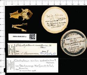 Keywords: Naturalis Biodiversity Center - RMNH.MAM.5001.a pal - Chrotopterus auritus - skull.jpeg artwork Dimensions artwork Document type Chrotopterus Individual count 1 Infraspecific epithet Infraspecific rank Institution Naturalis Kind of unit artwork Kind of unit specimen skull Life stage São Lourenço Rio Grande do Sul Brazilië Medium artwork Nomenclatural code Occurrence ID page Other fields Other versions artwork Permission license Naturalis donation CC-0 Publication location Scientific name Chrotopterus auritus Scientific name authorship female Source url http //bioportal naturalis nl Specific epithet auritus State or province Subject keywords artwork Subject keywords publication Title artwork Title publication Type status Uploaded with GWToolset Naturalis_Biodiversity_Center_-_RMNH MAM 5001 a_pal_-_Chrotopterus_auritus_-_skull http //medialib naturalis nl/file/id/RMNH MAM 5001 a_pal/format/large Mammals at Naturalis from the Rijksmuseum van Natuurlijke Historie Media donated by Naturalis Biodiversity Center Chrotopterus auritus Chrotopterus |