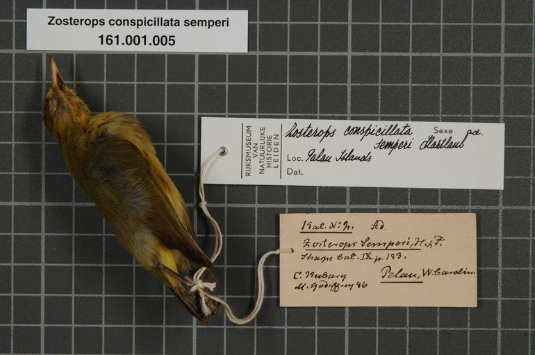 Keywords: Naturalis Biodiversity Center - RMNH.AVES.133121 1 - Zosterops conspicillata semperi Hartlaub, 1868 - Zosteropidae - bird skin specimen.jpeg artwork Dimensions artwork Document type Zosteropidae Zosterops Individual count 1 Infraspecific epithet semperi Infraspecific rank Institution Naturalis Kind of unit artwork Kind of unit specimen skin Life stage adult W Caroline Palau Islands Medium artwork Nomenclatural code Occurrence ID page Other fields Other versions artwork Permission license Naturalis donation CC-0 Publication location Scientific name Zosterops conspicillata semperi Hartlaub 1868 Scientific name authorship Hartlaub 1868 Source url http //bioportal naturalis nl Specific epithet conspicillata State or province Subject keywords artwork Subject keywords publication Title artwork Title publication Type status Uploaded with GWToolset Naturalis_Biodiversity_Center_-_RMNH AVES 133121_1_-_Zosterops_conspicillata_semperi_Hartlaub _1868_-_Zosteropidae_-_bird_skin_specimen http //medialib naturalis nl/file/id/RMNH AVES 133121_1/format/large Media donated by Naturalis Biodiversity Center Songbird specimens at Naturalis Biodiversity Center Zosterops conspicillatus Zosterops |