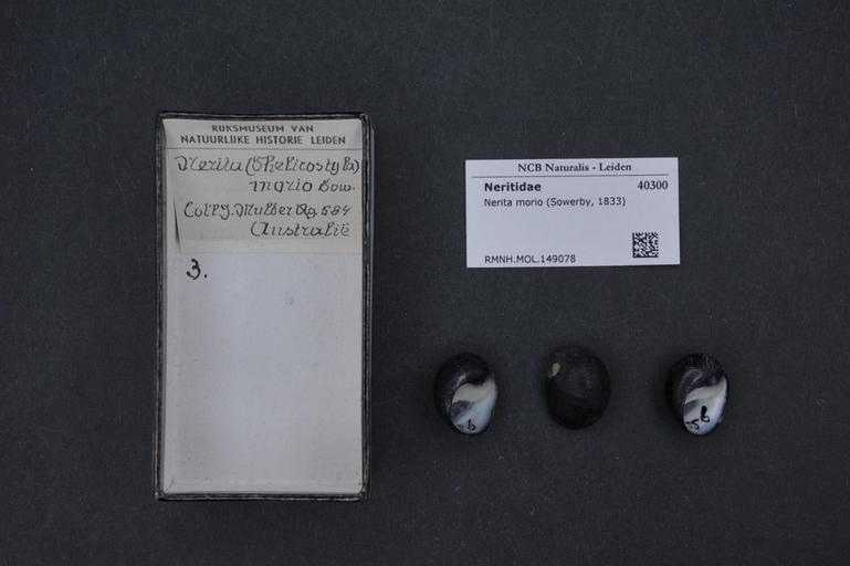 Keywords: Naturalis Biodiversity Center - RMNH.MOL.149078 - Nerita morio (Sowerby, 1833) - Neritidae - Mollusc shell.jpeg artwork Dimensions artwork Document type Neritidae subfamily Neritinae Nerita Individual count Infraspecific epithet Infraspecific rank Institution Naturalis Kind of unit artwork Kind of unit specimen shell Life stage Medium artwork Nomenclatural code Scale the width of the text on the species/QR-code label is 38 mm Occurrence ID page Other fields Other versions artwork Permission license Naturalis donation CC-0 Mollusca Publication location Scientific name Nerita morio Sowerby 1833 Scientific name authorship Sowerby 1833 Source url http //bioportal naturalis nl Specific epithet morio State or province Subject keywords artwork Subject keywords publication Title artwork Title publication Type status Uploaded with GWToolset Naturalis_Biodiversity_Center_-_RMNH MOL 149078_-_Nerita_morio_ Sowerby _1833 _-_Neritidae_-_Mollusc_shell http //medialib naturalis nl/file/id/RMNH MOL 149078/format/large Media donated by Naturalis Biodiversity Center Molluscs at Naturalis from the Rijksmuseum van Natuurlijke Historie Nerita morio Nerita
