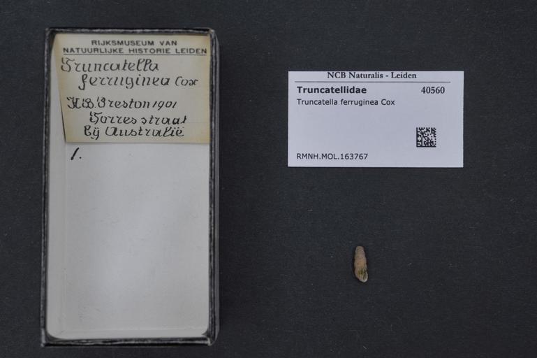 Keywords: Naturalis Biodiversity Center - RMNH.MOL.163767 - Truncatella ferruginea Cox - Truncatellidae - Mollusc shell.jpeg artwork Dimensions artwork Document type Truncatellidae Truncatella Individual count Infraspecific epithet Infraspecific rank Institution Naturalis Kind of unit artwork Kind of unit specimen shell Life stage Medium artwork Nomenclatural code Scale the width of the text on the species/QR-code label is 38 mm Occurrence ID page Other fields Other versions artwork Permission license Naturalis donation CC-0 Mollusca Publication location Scientific name Truncatella ferruginea Cox Scientific name authorship Cox Source url http //bioportal naturalis nl Specific epithet ferruginea State or province Subject keywords artwork Subject keywords publication Title artwork Title publication Type status Uploaded with GWToolset Naturalis_Biodiversity_Center_-_RMNH MOL 163767_-_Truncatella_ferruginea_Cox_-_Truncatellidae_-_Mollusc_shell http //medialib naturalis nl/file/id/RMNH MOL 163767/format/large Media donated by Naturalis Biodiversity Center Molluscs at Naturalis from the Rijksmuseum van Natuurlijke Historie Truncatella ferruginea Truncatella |