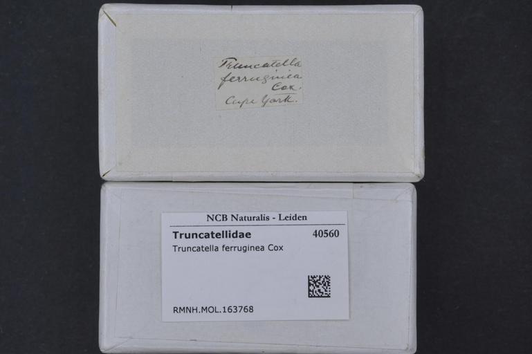 Keywords: Naturalis Biodiversity Center - RMNH.MOL.163768 1 - Truncatella ferruginea Cox - Truncatellidae - Mollusc shell.jpeg artwork Dimensions artwork Document type Truncatellidae Truncatella Individual count Infraspecific epithet Infraspecific rank Institution Naturalis Kind of unit artwork Kind of unit specimen shell Life stage Medium artwork Nomenclatural code Scale the width of the text on the species/QR-code label is 38 mm Occurrence ID page Other fields Other versions artwork Permission license Naturalis donation CC-0 Mollusca Publication location Scientific name Truncatella ferruginea Cox Scientific name authorship Cox Source url http //bioportal naturalis nl Specific epithet ferruginea State or province Subject keywords artwork Subject keywords publication Title artwork Title publication Type status Uploaded with GWToolset Naturalis_Biodiversity_Center_-_RMNH MOL 163768_1_-_Truncatella_ferruginea_Cox_-_Truncatellidae_-_Mollusc_shell http //medialib naturalis nl/file/id/RMNH MOL 163768_1/format/large Media donated by Naturalis Biodiversity Center Molluscs at Naturalis from the Rijksmuseum van Natuurlijke Historie Truncatella ferruginea Truncatella |