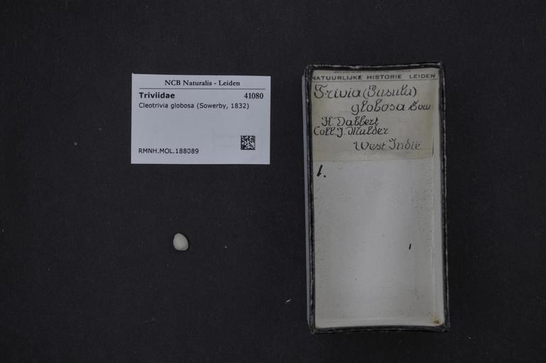Keywords: Naturalis Biodiversity Center - RMNH.MOL.188089 - Cleotrivia globosa (Sowerby, 1832) - Triviidae - Mollusc shell.jpeg artwork Dimensions artwork Document type Triviidae Cleotrivia Individual count Infraspecific epithet Infraspecific rank Institution Naturalis Kind of unit artwork Kind of unit specimen shell Life stage Medium artwork Nomenclatural code Source institute Rijksmuseum van Natuurlijke Historie Leiden Scale the width of the text on the species/QR-code label is 38 mm Occurrence ID page Other fields Other versions artwork Permission license Naturalis donation CC-0 Mollusca Publication location Scientific name Cleotrivia globosa Sowerby 1832 Scientific name authorship Sowerby 1832 Source url http //bioportal naturalis nl Specific epithet globosa State or province Subject keywords artwork Subject keywords publication Title artwork Title publication Type status Uploaded with GWToolset Naturalis_Biodiversity_Center_-_RMNH MOL 188089_-_Cleotrivia_globosa_ Sowerby _1832 _-_Triviidae_-_Mollusc_shell http //medialib naturalis nl/file/id/RMNH MOL 188089/format/large Media donated by Naturalis Biodiversity Center Molluscs at Naturalis from the Rijksmuseum van Natuurlijke Historie Cleotrivia globosa Cleotrivia