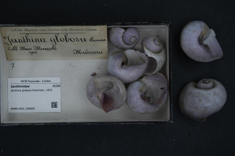 Keywords: Naturalis Biodiversity Center - RMNH.MOL.196809 - Janthina globosa Swainson, 1822 - Janthinidae - Mollusc shell.jpeg artwork Dimensions artwork Document type Janthinidae Janthina Individual count Infraspecific epithet Infraspecific rank Institution Naturalis Kind of unit artwork Kind of unit specimen shell Life stage Medium artwork Nomenclatural code Source institute Rijksmuseum van Natuurlijke Historie Leiden Scale the width of the text on the species/QR-code label is 38 mm Occurrence ID page Other fields Other versions artwork Permission license Naturalis donation CC-0 Mollusca Publication location Scientific name Janthina globosa Swainson 1822 Scientific name authorship Swainson 1822 Source url http //bioportal naturalis nl Specific epithet globosa State or province Subject keywords artwork Subject keywords publication Title artwork Title publication Type status Uploaded with GWToolset Naturalis_Biodiversity_Center_-_RMNH MOL 196809_-_Janthina_globosa_Swainson _1822_-_Janthinidae_-_Mollusc_shell http //medialib naturalis nl/file/id/RMNH MOL 196809/format/large Media donated by Naturalis Biodiversity Center Molluscs at Naturalis from the Rijksmuseum van Natuurlijke Historie Janthina globosa