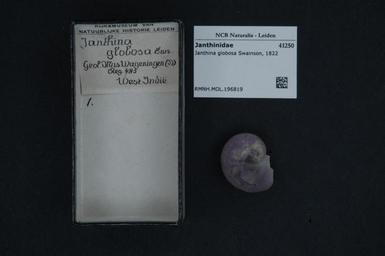 | Keywords: Naturalis Biodiversity Center - RMNH.MOL.196819 - Janthina globosa Swainson, 1822 - Janthinidae - Mollusc shell.jpeg artwork Dimensions artwork Document type Janthinidae Janthina Individual count Infraspecific epithet Infraspecific rank Institution Naturalis Kind of unit artwork Kind of unit specimen shell Life stage Medium artwork Nomenclatural code Source institute Rijksmuseum van Natuurlijke Historie Leiden Scale the width of the text on the species/QR-code label is 38 mm Occurrence ID page Other fields Other versions artwork Permission license Naturalis donation CC-0 Mollusca Publication location Scientific name Janthina globosa Swainson 1822 Scientific name authorship Swainson 1822 Source url http //bioportal naturalis nl Specific epithet globosa State or province Subject keywords artwork Subject keywords publication Title artwork Title publication Type status Uploaded with GWToolset Naturalis_Biodiversity_Center_-_RMNH MOL 196819_-_Janthina_globosa_Swainson _1822_-_Janthinidae_-_Mollusc_shell http //medialib naturalis nl/file/id/RMNH MOL 196819/format/large Media donated by Naturalis Biodiversity Center Molluscs at Naturalis from the Rijksmuseum van Natuurlijke Historie Janthina globosa |