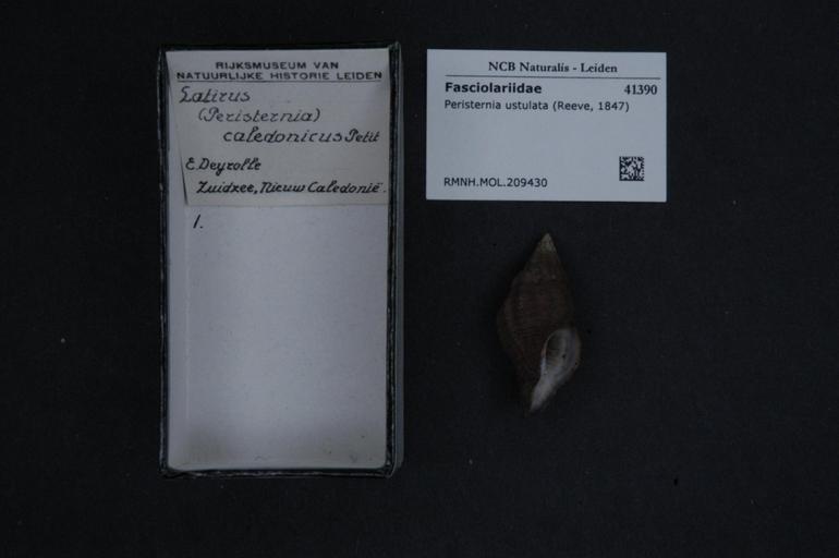 Keywords: Naturalis Biodiversity Center - RMNH.MOL.209430 - Peristernia ustulata (Reeve, 1847) - Fasciolariidae - Mollusc shell.jpeg artwork Dimensions artwork Document type Fasciolariidae subfamily Peristerniinae Peristernia Individual count Infraspecific epithet Infraspecific rank Institution Naturalis Kind of unit artwork Kind of unit specimen shell Life stage Medium artwork Nomenclatural code Source institute Rijksmuseum van Natuurlijke Historie Leiden Scale the width of the text on the species/QR-code label is 38 mm Occurrence ID page Other fields Other versions artwork Permission license Naturalis donation CC-0 Mollusca Publication location Scientific name Peristernia ustulata Reeve 1847 Scientific name authorship Reeve 1847 Source url http //bioportal naturalis nl Specific epithet ustulata State or province Subject keywords artwork Subject keywords publication Title artwork Title publication Type status Uploaded with GWToolset Naturalis_Biodiversity_Center_-_RMNH MOL 209430_-_Peristernia_ustulata_ Reeve _1847 _-_Fasciolariidae_-_Mollusc_shell http //medialib naturalis nl/file/id/RMNH MOL 209430/format/large Media donated by Naturalis Biodiversity Center Molluscs at Naturalis from the Rijksmuseum van Natuurlijke Historie Peristernia ustulata Peristernia