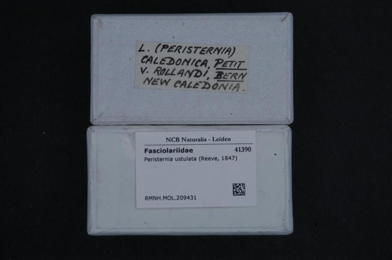 | Keywords: Naturalis Biodiversity Center - RMNH.MOL.209431 1 - Peristernia ustulata (Reeve, 1847) - Fasciolariidae - Mollusc shell.jpeg artwork Dimensions artwork Document type Fasciolariidae subfamily Peristerniinae Peristernia Individual count Infraspecific epithet Infraspecific rank Institution Naturalis Kind of unit artwork Kind of unit specimen shell Life stage Medium artwork Nomenclatural code Source institute Rijksmuseum van Natuurlijke Historie Leiden Scale the width of the text on the species/QR-code label is 38 mm Occurrence ID page Other fields Other versions artwork Permission license Naturalis donation CC-0 Mollusca Publication location Scientific name Peristernia ustulata Reeve 1847 Scientific name authorship Reeve 1847 Source url http //bioportal naturalis nl Specific epithet ustulata State or province Subject keywords artwork Subject keywords publication Title artwork Title publication Type status Uploaded with GWToolset Naturalis_Biodiversity_Center_-_RMNH MOL 209431_1_-_Peristernia_ustulata_ Reeve _1847 _-_Fasciolariidae_-_Mollusc_shell http //medialib naturalis nl/file/id/RMNH MOL 209431_1/format/large Media donated by Naturalis Biodiversity Center Molluscs at Naturalis from the Rijksmuseum van Natuurlijke Historie Peristernia ustulata Peristernia |