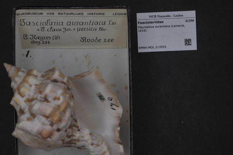 | Keywords: Naturalis Biodiversity Center - RMNH.MOL.213553 - Pleuroploca aurantiaca (Lamarck, 1816) - Fasciolariidae - Mollusc shell.jpeg artwork Dimensions artwork Document type Fasciolariidae subfamily Fasciolariinae Pleuroploca Individual count Infraspecific epithet Infraspecific rank Institution Naturalis Kind of unit artwork Kind of unit specimen shell Life stage Medium artwork Nomenclatural code Source institute Rijksmuseum van Natuurlijke Historie Leiden Scale the width of the text on the species/QR-code label is 38 mm Occurrence ID page Other fields Other versions artwork Permission license Naturalis donation CC-0 Mollusca Publication location Scientific name Pleuroploca aurantiaca Lamarck 1816 Scientific name authorship Lamarck 1816 Source url http //bioportal naturalis nl Specific epithet aurantiaca State or province Subject keywords artwork Subject keywords publication Title artwork Title publication Type status Uploaded with GWToolset Naturalis_Biodiversity_Center_-_RMNH MOL 213553_-_Pleuroploca_aurantiaca_ Lamarck _1816 _-_Fasciolariidae_-_Mollusc_shell http //medialib naturalis nl/file/id/RMNH MOL 213553/format/large Media donated by Naturalis Biodiversity Center Molluscs at Naturalis from the Rijksmuseum van Natuurlijke Historie Pleuroploca aurantiaca Pleuroploca |
