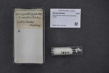 Keywords: Naturalis Biodiversity Center - RMNH.MOL.215738 - Austroginella translucida (Sowerby, 1846) - Marginellidae - Mollusc shell.jpeg artwork Dimensions artwork Document type Marginellidae Austroginella Individual count Infraspecific epithet Infraspecific rank Institution Naturalis Kind of unit artwork Kind of unit specimen shell Life stage Medium artwork Nomenclatural code Source institute Rijksmuseum van Natuurlijke Historie Leiden Scale the width of the text on the species/QR-code label is 38 mm Occurrence ID page Neogastropoda Other fields Other versions artwork Permission license Naturalis donation CC-0 Mollusca Publication location Scientific name Austroginella translucida Sowerby 1846 Scientific name authorship Sowerby 1846 Source url http //bioportal naturalis nl Specific epithet translucida State or province Subject keywords artwork Subject keywords publication Title artwork Title publication Type status Uploaded with GWToolset Naturalis_Biodiversity_Center_-_RMNH MOL 215738_-_Austroginella_translucida_ Sowerby _1846 _-_Marginellidae_-_Mollusc_shell http //medialib naturalis nl/file/id/RMNH MOL 215738/format/large Media donated by Naturalis Biodiversity Center Molluscs at Naturalis from the Rijksmuseum van Natuurlijke Historie Austroginella translucida Austroginella |