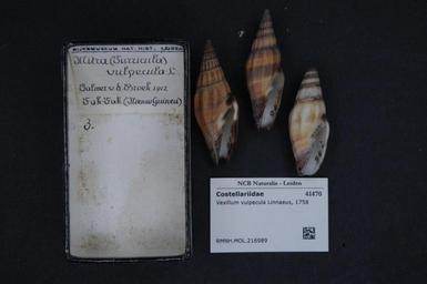 Keywords: Naturalis Biodiversity Center - RMNH.MOL.216989 - Vexillum vulpecula (Linnaeus, 1758) - Costellariidae - Mollusc shell.jpeg artwork Dimensions artwork Document type Costellariidae Vexillum Individual count Infraspecific epithet Infraspecific rank Institution Naturalis Kind of unit artwork Kind of unit specimen shell Life stage Medium artwork Nomenclatural code Source institute Rijksmuseum van Natuurlijke Historie Leiden Scale the width of the text on the species/QR-code label is 38 mm Occurrence ID page Neogastropoda Other fields Other versions artwork Permission license Naturalis donation CC-0 Mollusca Publication location Scientific name Vexillum vulpecula Linnaeus 1758 Scientific name authorship Linnaeus 1758 Source url http //bioportal naturalis nl Specific epithet vulpecula State or province Subject keywords artwork Subject keywords publication Title artwork Title publication Type status Uploaded with GWToolset Naturalis_Biodiversity_Center_-_RMNH MOL 216989_-_Vexillum_vulpecula_ Linnaeus _1758 _-_Costellariidae_-_Mollusc_shell http //medialib naturalis nl/file/id/RMNH MOL 216989/format/large Molluscs at Naturalis from the Rijksmuseum van Natuurlijke Historie Media donated by Naturalis Biodiversity Center Vexillum vulpecula Vexillum |
