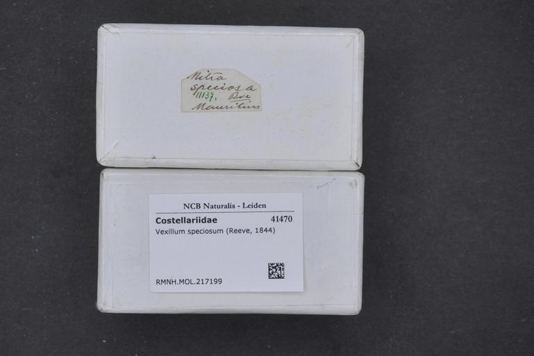| Keywords: Naturalis Biodiversity Center - RMNH.MOL.217199 1 - Vexillum speciosum (Reeve, 1844) - Costellariidae - Mollusc shell.jpeg artwork Dimensions artwork Document type Costellariidae Vexillum Individual count Infraspecific epithet Infraspecific rank Institution Naturalis Kind of unit artwork Kind of unit specimen shell Life stage Medium artwork Nomenclatural code Source institute Rijksmuseum van Natuurlijke Historie Leiden Scale the width of the text on the species/QR-code label is 38 mm Occurrence ID page Neogastropoda Other fields Other versions artwork Permission license Naturalis donation CC-0 Mollusca Publication location Scientific name Vexillum speciosum Reeve 1844 Scientific name authorship Reeve 1844 Source url http //bioportal naturalis nl Specific epithet speciosum State or province Subject keywords artwork Subject keywords publication Title artwork Title publication Type status Uploaded with GWToolset Naturalis_Biodiversity_Center_-_RMNH MOL 217199_1_-_Vexillum_speciosum_ Reeve _1844 _-_Costellariidae_-_Mollusc_shell http //medialib naturalis nl/file/id/RMNH MOL 217199_1/format/large Molluscs at Naturalis from the Rijksmuseum van Natuurlijke Historie Media donated by Naturalis Biodiversity Center Vexillum speciosum Vexillum |