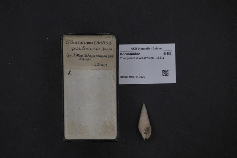 | Keywords: Naturalis Biodiversity Center - RMNH.MOL.219029 - Tomopleura nivea (Philippi, 1851) - Borsoniidae - Mollusc shell.jpeg artwork Dimensions artwork Document type Borsoniidae Tomopleura Individual count Infraspecific epithet Infraspecific rank Institution Naturalis Kind of unit artwork Kind of unit specimen shell Life stage Medium artwork Nomenclatural code Source institute Rijksmuseum van Natuurlijke Historie Leiden Scale the width of the text on the species/QR-code label is 38 mm Occurrence ID page Other fields Other versions artwork Permission license Naturalis donation CC-0 Mollusca Publication location Scientific name Tomopleura nivea Philippi 1851 Scientific name authorship Philippi 1851 Source url http //bioportal naturalis nl Specific epithet nivea State or province Subject keywords artwork Subject keywords publication Title artwork Title publication Type status Uploaded with GWToolset Naturalis_Biodiversity_Center_-_RMNH MOL 219029_-_Tomopleura_nivea_ Philippi _1851 _-_Borsoniidae_-_Mollusc_shell http //medialib naturalis nl/file/id/RMNH MOL 219029/format/large Molluscs at Naturalis from the Rijksmuseum van Natuurlijke Historie Media donated by Naturalis Biodiversity Center Tomopleura nivea Tomopleura |