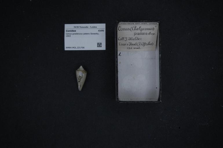 | Keywords: Naturalis Biodiversity Center - RMNH.MOL.221706 - Conus gradatulus patens Sowerby, 1903 - Conidae - Mollusc shell.jpeg artwork Dimensions artwork Document type Conidae Conus Individual count Infraspecific epithet patens Infraspecific rank Institution Naturalis Kind of unit artwork Kind of unit specimen shell Life stage Medium artwork Nomenclatural code Source institute Rijksmuseum van Natuurlijke Historie Leiden Scale the width of the text on the species/QR-code label is 38 mm Occurrence ID page Other fields Other versions artwork Permission license Naturalis donation CC-0 Mollusca Publication location Scientific name Conus gradatulus patens Sowerby 1903 Scientific name authorship Sowerby 1903 Source url http //bioportal naturalis nl Specific epithet gradatulus State or province Subject keywords artwork Subject keywords publication Title artwork Title publication Type status Uploaded with GWToolset Naturalis_Biodiversity_Center_-_RMNH MOL 221706_-_Conus_gradatulus_patens_Sowerby _1903_-_Conidae_-_Mollusc_shell http //medialib naturalis nl/file/id/RMNH MOL 221706/format/large Molluscs at Naturalis from the Rijksmuseum van Natuurlijke Historie Media donated by Naturalis Biodiversity Center Conus gradatulus Conus |