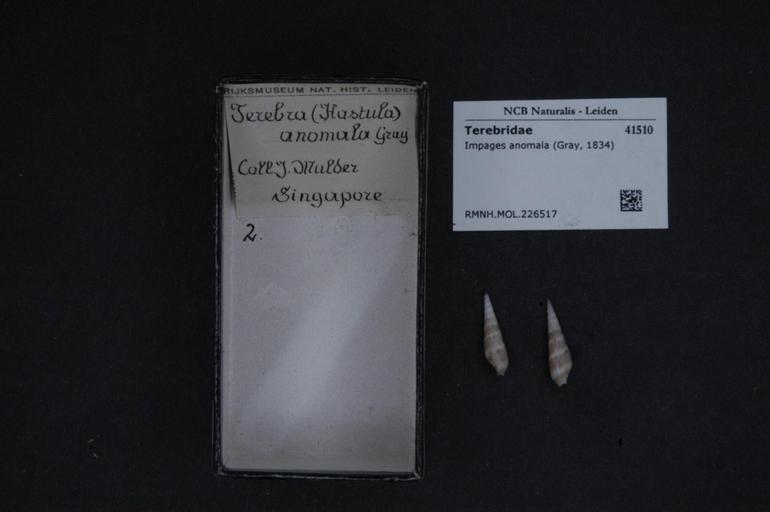 | Keywords: Naturalis Biodiversity Center - RMNH.MOL.226517 - Impages anomala (Gray, 1834) - Terebridae - Mollusc shell.jpeg artwork Dimensions artwork Document type Terebridae Impages Individual count Infraspecific epithet Infraspecific rank Institution Naturalis Kind of unit artwork Kind of unit specimen shell Life stage Medium artwork Nomenclatural code Source institute Rijksmuseum van Natuurlijke Historie Leiden Scale the width of the text on the species/QR-code label is 38 mm Occurrence ID page Other fields Other versions artwork Permission license Naturalis donation CC-0 Mollusca Publication location Scientific name Impages anomala Gray 1834 Scientific name authorship Gray 1834 Source url http //bioportal naturalis nl Specific epithet anomala State or province Subject keywords artwork Subject keywords publication Title artwork Title publication Type status Uploaded with GWToolset Naturalis_Biodiversity_Center_-_RMNH MOL 226517_-_Impages_anomala_ Gray _1834 _-_Terebridae_-_Mollusc_shell http //medialib naturalis nl/file/id/RMNH MOL 226517/format/large Molluscs at Naturalis from the Rijksmuseum van Natuurlijke Historie Media donated by Naturalis Biodiversity Center Impages anomala Impages |