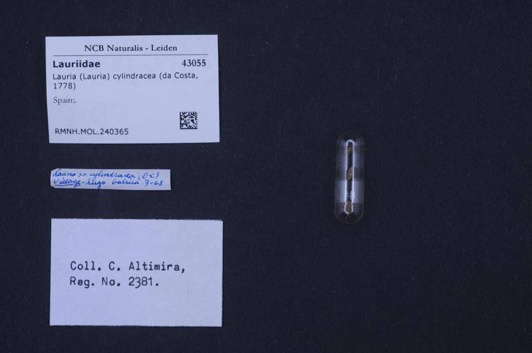 | Keywords: Naturalis Biodiversity Center - RMNH.MOL.240365 - Lauria (Lauria) cylindracea (Da Costa, 1778) - Lauriidae - Mollusc shell.jpeg artwork Dimensions artwork Document type Lauriidae Lauria Individual count Infraspecific epithet Infraspecific rank Institution Naturalis Kind of unit artwork Kind of unit specimen shell Life stage Spain Medium artwork Nomenclatural code Source institute Rijksmuseum van Natuurlijke Historie Leiden Scale the width of the text on the species/QR-code label is 38 mm Occurrence ID page Other fields Other versions artwork Permission license Naturalis donation CC-0 Mollusca Publication location Scientific name Lauria Lauria cylindracea Da Costa 1778 Scientific name authorship Da Costa 1778 Source url http //bioportal naturalis nl Specific epithet cylindracea State or province Subject keywords artwork Subject keywords publication Title artwork Title publication Type status Uploaded with GWToolset Naturalis_Biodiversity_Center_-_RMNH MOL 240365_-_Lauria_ Lauria _cylindracea_ Da_Costa _1778 _-_Lauriidae_-_Mollusc_shell http //medialib naturalis nl/file/id/RMNH MOL 240365/format/large Molluscs at Naturalis from the Rijksmuseum van Natuurlijke Historie Media donated by Naturalis Biodiversity Center Lauria cylindracea Lauria |