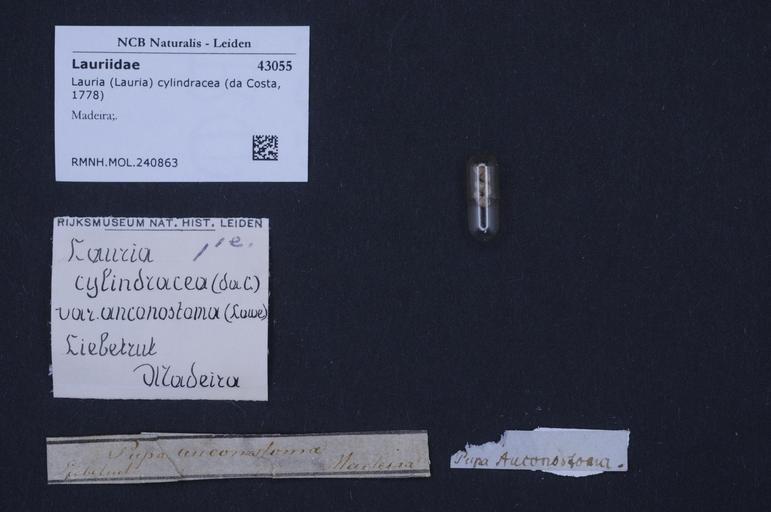 | Keywords: Naturalis Biodiversity Center - RMNH.MOL.240863 - Lauria (Lauria) cylindracea (Da Costa, 1778) - Lauriidae - Mollusc shell.jpeg artwork Dimensions artwork Document type Lauriidae Lauria Individual count Infraspecific epithet Infraspecific rank Institution Naturalis Kind of unit artwork Kind of unit specimen shell Life stage Madeira Medium artwork Nomenclatural code Source institute Rijksmuseum van Natuurlijke Historie Leiden Scale the width of the text on the species/QR-code label is 38 mm Occurrence ID page Other fields Other versions artwork Permission license Naturalis donation CC-0 Mollusca Publication location Scientific name Lauria Lauria cylindracea Da Costa 1778 Scientific name authorship Da Costa 1778 Source url http //bioportal naturalis nl Specific epithet cylindracea State or province Madeira Subject keywords artwork Subject keywords publication Title artwork Title publication Type status Uploaded with GWToolset Naturalis_Biodiversity_Center_-_RMNH MOL 240863_-_Lauria_ Lauria _cylindracea_ Da_Costa _1778 _-_Lauriidae_-_Mollusc_shell http //medialib naturalis nl/file/id/RMNH MOL 240863/format/large Molluscs at Naturalis from the Rijksmuseum van Natuurlijke Historie Media donated by Naturalis Biodiversity Center Lauria cylindracea Lauria |