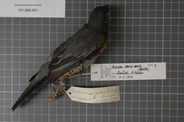 | Keywords: Naturalis Biodiversity Center - RMNH.AVES.123710 1 - Coracina morio morio (Muller, 1843) - Campephagidae - bird skin specimen.jpeg artwork Dimensions artwork Document type Campephagidae Coracina Individual count 1 Infraspecific epithet morio Infraspecific rank Institution Naturalis Kind of unit artwork Kind of unit specimen skin Life stage Indonesia N Celebes Limbotto Medium artwork Nomenclatural code Occurrence ID page Other fields Other versions artwork Permission license Naturalis donation CC-0 Publication location Scientific name Coracina morio morio Muller 1843 Scientific name authorship Muller 1843 female Source url http //bioportal naturalis nl Specific epithet morio State or province N Celebes Subject keywords artwork Subject keywords publication Title artwork Title publication Type status Uploaded with GWToolset Naturalis_Biodiversity_Center_-_RMNH AVES 123710_1_-_Coracina_morio_morio_ Muller _1843 _-_Campephagidae_-_bird_skin_specimen http //medialib naturalis nl/file/id/RMNH AVES 123710_1/format/large Media donated by Naturalis Biodiversity Center Songbird specimens at Naturalis Biodiversity Center Coracina morio morio |