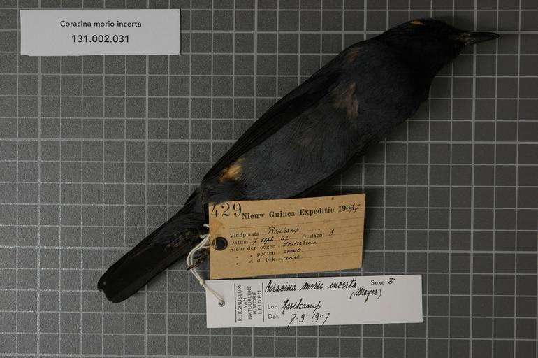 | Keywords: Naturalis Biodiversity Center - RMNH.AVES.123722 1 - Coracina morio incerta (Meyer, 1874) - Campephagidae - bird skin specimen.jpeg artwork Dimensions artwork Document type Campephagidae Coracina Individual count 1 Infraspecific epithet incerta Infraspecific rank Institution Naturalis Kind of unit artwork Kind of unit specimen skin Life stage Resikamp Medium artwork Nomenclatural code Occurrence ID page Other fields Other versions artwork Permission license Naturalis donation CC-0 Publication location Scientific name Coracina morio incerta Meyer 1874 Scientific name authorship Meyer 1874 male Source url http //bioportal naturalis nl Specific epithet morio State or province Subject keywords artwork Subject keywords publication Title artwork Title publication Type status Uploaded with GWToolset Naturalis_Biodiversity_Center_-_RMNH AVES 123722_1_-_Coracina_morio_incerta_ Meyer _1874 _-_Campephagidae_-_bird_skin_specimen http //medialib naturalis nl/file/id/RMNH AVES 123722_1/format/large Media donated by Naturalis Biodiversity Center Songbird specimens at Naturalis Biodiversity Center Coracina morio incerta |