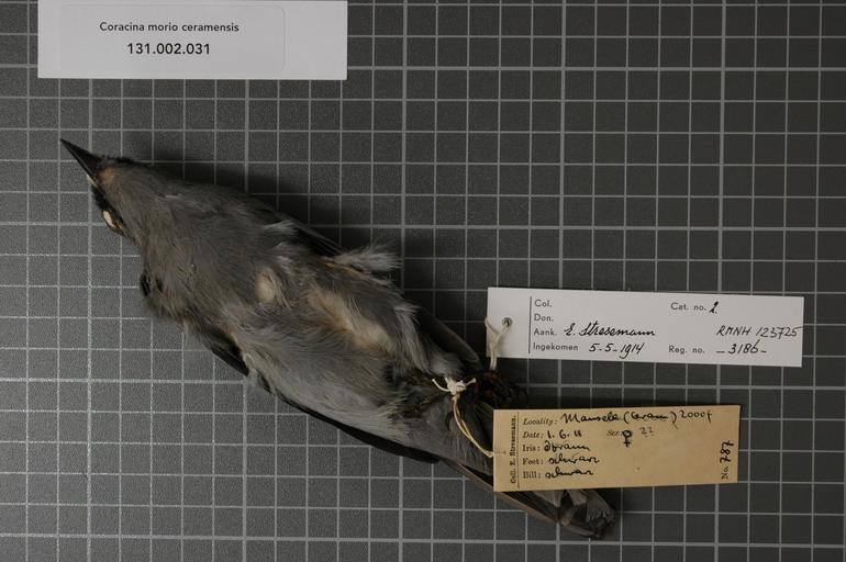 | Keywords: Naturalis Biodiversity Center - RMNH.AVES.123725 2 - Coracina morio ceramensis (Bonaparte, 1850) - Campephagidae - bird skin specimen.jpeg artwork Dimensions artwork Document type Campephagidae Coracina Individual count 1 Infraspecific epithet ceramensis Infraspecific rank Institution Naturalis Kind of unit artwork Kind of unit specimen skin Life stage Indonesia Ceram Mansela Medium artwork Nomenclatural code Occurrence ID page Other fields Other versions artwork Permission license Naturalis donation CC-0 Publication location Scientific name Coracina morio ceramensis Bonaparte 1850 Scientific name authorship Bonaparte 1850 female Source url http //bioportal naturalis nl Specific epithet morio State or province Subject keywords artwork Subject keywords publication Title artwork Title publication Type status Uploaded with GWToolset Naturalis_Biodiversity_Center_-_RMNH AVES 123725_2_-_Coracina_morio_ceramensis_ Bonaparte _1850 _-_Campephagidae_-_bird_skin_specimen http //medialib naturalis nl/file/id/RMNH AVES 123725_2/format/large Media donated by Naturalis Biodiversity Center Songbird specimens at Naturalis Biodiversity Center Coracina morio ceramensis |