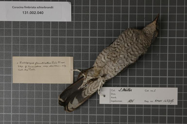 | Keywords: Naturalis Biodiversity Center - RMNH.AVES.123798 2 - Coracina fimbriata schierbrandii (Pelzeln, 1865) - Campephagidae - bird skin specimen.jpeg artwork Dimensions artwork Document type Campephagidae Coracina Individual count 1 Infraspecific epithet schierbrandii Infraspecific rank Institution Naturalis Kind of unit artwork Kind of unit specimen skin Life stage Indonesia W Sumatra Medium artwork Nomenclatural code Additional label info orig lab by Temm Sex remark female lab Occurrence ID page Other fields Other versions artwork Permission license Naturalis donation CC-0 Publication location Scientific name Coracina fimbriata schierbrandii Pelzeln 1865 Scientific name authorship Pelzeln 1865 female Source url http //bioportal naturalis nl Specific epithet fimbriata State or province W Sumatra Subject keywords artwork Subject keywords publication Title artwork Title publication Type status Uploaded with GWToolset Naturalis_Biodiversity_Center_-_RMNH AVES 123798_2_-_Coracina_fimbriata_schierbrandii_ Pelzeln _1865 _-_Campephagidae_-_bird_skin_specimen http //medialib naturalis nl/file/id/RMNH AVES 123798_2/format/large Media donated by Naturalis Biodiversity Center Songbird specimens at Naturalis Biodiversity Center Coracina fimbriata schierbrandii |