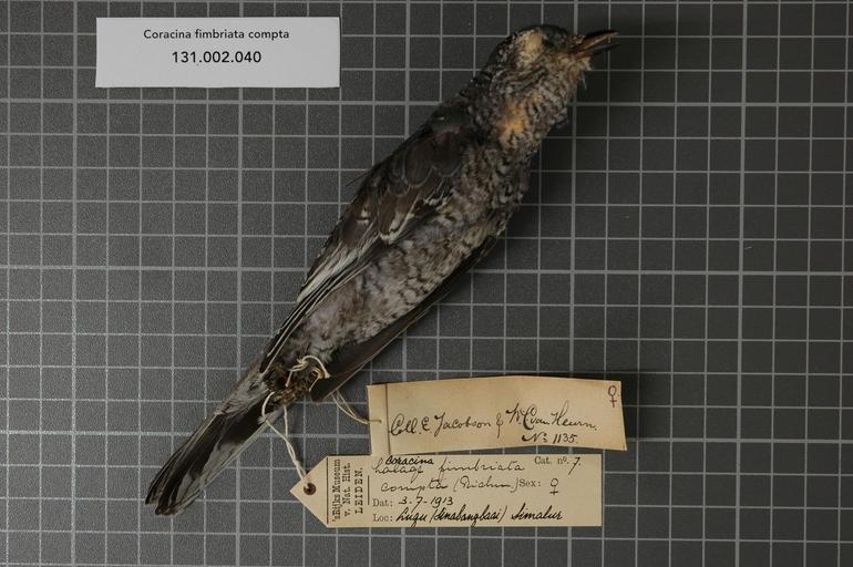 | Keywords: Naturalis Biodiversity Center - RMNH.AVES.123830 1 - Coracina fimbriata compta (Richmond, 1903) - Campephagidae - bird skin specimen.jpeg artwork Dimensions artwork Document type Campephagidae Coracina Individual count 1 Infraspecific epithet compta Infraspecific rank Institution Naturalis Kind of unit artwork Kind of unit specimen skin Life stage Simalur Sinabangbaai Lugu Medium artwork Nomenclatural code Age remark on field label niet geslachtsrijp Occurrence ID page Other fields Other versions artwork Permission license Naturalis donation CC-0 Publication location Scientific name Coracina fimbriata compta Richmond 1903 Scientific name authorship Richmond 1903 female Source url http //bioportal naturalis nl Specific epithet fimbriata State or province Simalur Subject keywords artwork Subject keywords publication Title artwork Title publication Type status Uploaded with GWToolset Naturalis_Biodiversity_Center_-_RMNH AVES 123830_1_-_Coracina_fimbriata_compta_ Richmond _1903 _-_Campephagidae_-_bird_skin_specimen http //medialib naturalis nl/file/id/RMNH AVES 123830_1/format/large Media donated by Naturalis Biodiversity Center Songbird specimens at Naturalis Biodiversity Center Coracina fimbriata compta |