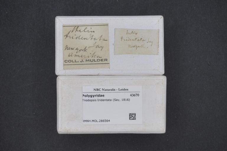 Keywords: Naturalis Biodiversity Center - RMNH.MOL.286564 1 - Triodopsis tridentata (Say, 1816) - Polygyridae - Mollusc shell.jpeg artwork Dimensions artwork Document type Polygyridae subfamily Triodopsinae Triodopsis Individual count Infraspecific epithet Infraspecific rank Institution Naturalis Kind of unit artwork Kind of unit specimen shell Life stage Medium artwork Nomenclatural code Source institute Rijksmuseum van Natuurlijke Historie Leiden Scale the width of the text on the species/QR-code label is 38 mm Occurrence ID page Other fields Other versions artwork Permission license Naturalis donation CC-0 Mollusca Publication location Scientific name Triodopsis tridentata Say 1816 Scientific name authorship Say 1816 Source url http //bioportal naturalis nl Specific epithet tridentata State or province Subject keywords artwork Subject keywords publication Title artwork Title publication Type status Uploaded with GWToolset Naturalis_Biodiversity_Center_-_RMNH MOL 286564_1_-_Triodopsis_tridentata_ Say _1816 _-_Polygyridae_-_Mollusc_shell http //medialib naturalis nl/file/id/RMNH MOL 286564_1/format/large Molluscs at Naturalis from the Rijksmuseum van Natuurlijke Historie Media donated by Naturalis Biodiversity Center Triodopsis tridentata Triodopsis