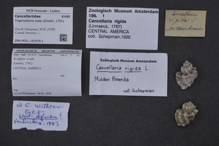 | Keywords: Naturalis Biodiversity Center - ZMA.MOLL.161919.1 - Trigonostoma scala (Gmelin, 1791) - Cancellariidae - Mollusc shell.jpeg artwork Dimensions artwork Document type Cancellariidae subfamily Cancellariinae Scalptia Individual count Infraspecific epithet Infraspecific rank Institution Naturalis Kind of unit artwork Kind of unit specimen shell Life stage Central America Medium artwork Nomenclatural code Scale the width of the text on the species/QR-code label is 38 mm Occurrence ID page Other fields Other versions artwork Permission license Naturalis donation CC-0 Mollusca Publication location Scientific name Trigonostoma scala Gmelin 1791 Scientific name authorship Petit 1976 Source url http //bioportal naturalis nl Specific epithet withrowi State or province Subject keywords artwork Subject keywords publication Title artwork Title publication Type status Uploaded with GWToolset Naturalis_Biodiversity_Center_-_ZMA MOLL 161919 1_-_Trigonostoma_scala_ Gmelin _1791 _-_Cancellariidae_-_Mollusc_shell http //medialib naturalis nl/file/id/ZMA MOLL 161919 1/format/large Media donated by Naturalis Biodiversity Center Molluscs at Naturalis from the Zoölogisch Museum Amsterdam Scalptia withrowi Scalptia |