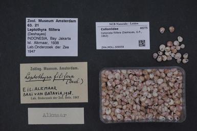 MAKE A MEME View Large Image Naturalis Biodiversity Center - ZMA.MOLL.309058 - Collonista filifera (Deshayes, G.P., 1863) - Colloniidae - Mollusc shell.jpeg artwork Dimensions artwork Document type Colloniidae Collonista Individual count Infraspecific epithet ...