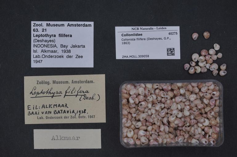 Keywords: Naturalis Biodiversity Center - ZMA.MOLL.309058 - Collonista filifera (Deshayes, G.P., 1863) - Colloniidae - Mollusc shell.jpeg artwork Dimensions artwork Document type Colloniidae Collonista Individual count Infraspecific epithet Infraspecific rank Institution Naturalis Kind of unit artwork Kind of unit specimen shell Life stage Medium artwork Nomenclatural code Source institute Zoölogisch Museum Amsterdam Scale the width of the text on the species/QR-code label is 38 mm Occurrence ID page Other fields Other versions artwork Permission license Naturalis donation CC-0 Mollusca Publication location Scientific name Collonista filifera Deshayes G P 1863 Scientific name authorship Deshayes 1863 Source url http //bioportal naturalis nl Specific epithet filifera State or province Subject keywords artwork Subject keywords publication Title artwork Title publication Type status Uploaded with GWToolset Naturalis_Biodiversity_Center_-_ZMA MOLL 309058_-_Collonista_filifera_ Deshayes _G P _1863 _-_Colloniidae_-_Mollusc_shell http //medialib naturalis nl/file/id/ZMA MOLL 309058/format/large Media donated by Naturalis Biodiversity Center Molluscs at Naturalis from the Zoölogisch Museum Amsterdam Collonista filifera Collonista