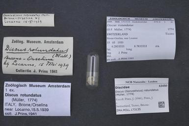 | Keywords: Naturalis Biodiversity Center - ZMA.MOLL.173135 - Discus (Gonyodiscus) rotundatus (Müller, 1774) - Discidae - Mollusc shell.jpeg artwork Dimensions artwork Document type Discidae Discus Individual count Infraspecific epithet Infraspecific rank Institution Naturalis Kind of unit artwork Kind of unit specimen shell Life stage Switzerland Ticino Brione-Orselina near Locarno; lat 46 2833333 lon 8 7833333; 15-v-1939 Medium artwork Nomenclatural code Collection remarks Moll Scale the width of the text on the species/QR-code label is 38 mm Occurrence ID page Other fields Other versions artwork Permission license Naturalis donation CC-0 Mollusca Publication location Scientific name Discus Gonyodiscus rotundatus Müller 1774 Scientific name authorship Müller 1774 Source url http //bioportal naturalis nl Specific epithet rotundatus State or province Ticino Subject keywords artwork Subject keywords publication Title artwork Title publication Type status Uploaded with GWToolset Naturalis_Biodiversity_Center_-_ZMA MOLL 173135_-_Discus_ Gonyodiscus _rotundatus_ Müller _1774 _-_Discidae_-_Mollusc_shell http //medialib naturalis nl/file/id/ZMA MOLL 173135/format/large Media donated by Naturalis Biodiversity Center Molluscs at Naturalis from the Zoölogisch Museum Amsterdam Discus rotundatus Discus |