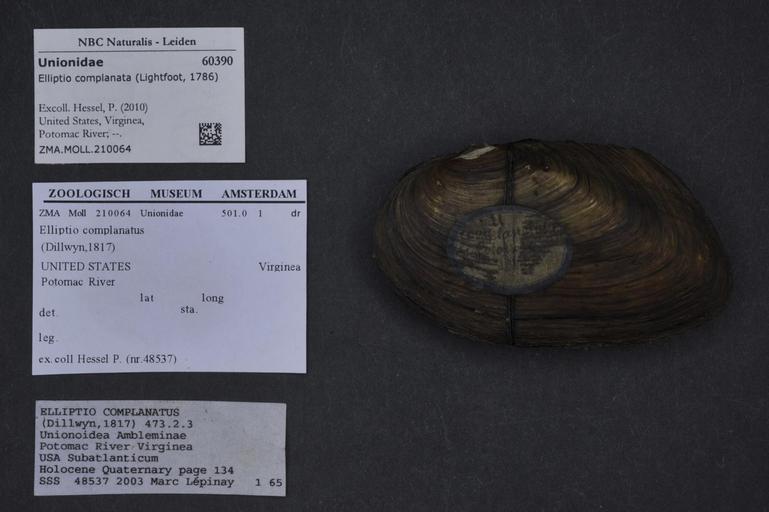 | Keywords: Naturalis Biodiversity Center - ZMA.MOLL.210064 - Elliptio complanata (Lightfoot, 1786) - Unionidae - Mollusc shell.jpeg artwork Dimensions artwork Document type Unionidae subfamily Ambleminae Elliptio Individual count Infraspecific epithet Infraspecific rank Institution Naturalis Kind of unit artwork Kind of unit specimen shell Life stage United States Virginea Potomac River Medium artwork Nomenclatural code Scale the width of the text on the species/QR-code label is 38 mm Occurrence ID page Other fields Other versions artwork Permission license Naturalis donation CC-0 Mollusca Publication location Scientific name Elliptio complanata Lightfoot 1786 Scientific name authorship Lightfoot 1786 Source url http //bioportal naturalis nl Specific epithet complanata State or province Virginea Subject keywords artwork Subject keywords publication Title artwork Title publication Type status Uploaded with GWToolset Naturalis_Biodiversity_Center_-_ZMA MOLL 210064_-_Elliptio_complanata_ Lightfoot _1786 _-_Unionidae_-_Mollusc_shell http //medialib naturalis nl/file/id/ZMA MOLL 210064/format/large Media donated by Naturalis Biodiversity Center Molluscs at Naturalis from the Zoölogisch Museum Amsterdam Elliptio complanata Elliptio |