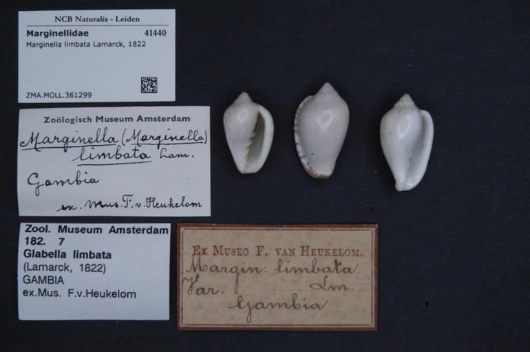 | Keywords: Naturalis Biodiversity Center - ZMA.MOLL.361299 - Marginella limbata Lamarck, 1822 - Marginellidae - Mollusc shell.jpeg artwork Dimensions artwork Document type Marginellidae Marginella Individual count Infraspecific epithet Infraspecific rank Institution Naturalis Kind of unit artwork Kind of unit specimen shell Life stage Medium artwork Nomenclatural code Source institute Zoölogisch Museum Amsterdam Scale the width of the text on the species/QR-code label is 38 mm Occurrence ID page Neogastropoda Other fields Other versions artwork Permission license Naturalis donation CC-0 Mollusca Publication location Scientific name Marginella limbata Lamarck 1822 Scientific name authorship Lamarck 1822 Source url http //bioportal naturalis nl Specific epithet limbata State or province Subject keywords artwork Subject keywords publication Title artwork Title publication Type status Uploaded with GWToolset Naturalis_Biodiversity_Center_-_ZMA MOLL 361299_-_Marginella_limbata_Lamarck _1822_-_Marginellidae_-_Mollusc_shell http //medialib naturalis nl/file/id/ZMA MOLL 361299/format/large Media donated by Naturalis Biodiversity Center Molluscs at Naturalis from the Zoölogisch Museum Amsterdam Marginella limbata Marginella |