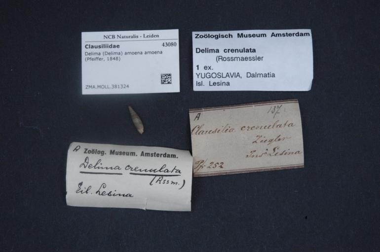 | Keywords: Naturalis Biodiversity Center - ZMA.MOLL.381324 - Delima (Delima) amoena amoena (Pfeiffer, 1848) - Clausiliidae - Mollusc shell.jpeg artwork Dimensions artwork Document type Clausiliidae subfamily Alopiinae Delima Individual count Infraspecific epithet amoena Infraspecific rank Institution Naturalis Kind of unit artwork Kind of unit specimen shell Life stage Medium artwork Nomenclatural code Source institute Rijksmuseum van Natuurlijke Historie Leiden Scale the width of the text on the species/QR-code label is 38 mm Occurrence ID page Other fields Other versions artwork Permission license Naturalis donation CC-0 Mollusca Publication location Scientific name Delima Delima amoena amoena Pfeiffer 1848 Scientific name authorship Pfeiffer 1848 Source url http //bioportal naturalis nl Specific epithet amoena State or province Subject keywords artwork Subject keywords publication Title artwork Title publication Type status Uploaded with GWToolset Naturalis_Biodiversity_Center_-_ZMA MOLL 381324_-_Delima_ Delima _amoena_amoena_ Pfeiffer _1848 _-_Clausiliidae_-_Mollusc_shell http //medialib naturalis nl/file/id/ZMA MOLL 381324/format/large Molluscs at Naturalis from the Zoölogisch Museum Amsterdam Media donated by Naturalis Biodiversity Center Delima amoena Delima |
