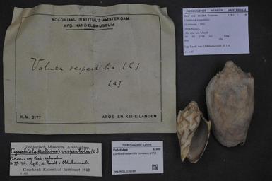 Keywords: Naturalis Biodiversity Center - ZMA.MOLL.226288 - Cymbiola vespertilio Linnaeus, 1758 - Volutidae - Mollusc shell.jpeg artwork Dimensions artwork Document type Volutidae Cymbiola Individual count Infraspecific epithet Infraspecific rank Institution Naturalis Kind of unit artwork Kind of unit specimen shell Life stage Medium artwork Nomenclatural code Scale the width of the text on the species/QR-code label is 38 mm Occurrence ID page Neogastropoda Other fields Other versions artwork Permission license Naturalis donation CC-0 Mollusca Publication location Scientific name Cymbiola vespertilio Linnaeus 1758 Scientific name authorship Linnaeus 1758 Source url http //bioportal naturalis nl Specific epithet vespertilio State or province Subject keywords artwork Subject keywords publication Title artwork Title publication Type status Uploaded with GWToolset Naturalis_Biodiversity_Center_-_ZMA MOLL 226288_-_Cymbiola_vespertilio_Linnaeus _1758_-_Volutidae_-_Mollusc_shell http //medialib naturalis nl/file/id/ZMA MOLL 226288/format/large Media donated by Naturalis Biodiversity Center Molluscs at Naturalis from the Zoölogisch Museum Amsterdam Cymbiola vespertilio Cymbiola |