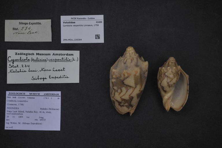 Keywords: Naturalis Biodiversity Center - ZMA.MOLL.226384 - Cymbiola vespertilio Linnaeus, 1758 - Volutidae - Mollusc shell.jpeg artwork Dimensions artwork Document type Volutidae Cymbiola Individual count Infraspecific epithet Infraspecific rank Institution Naturalis Kind of unit artwork Kind of unit specimen shell Life stage Medium artwork Nomenclatural code Scale the width of the text on the species/QR-code label is 38 mm Occurrence ID page Neogastropoda Other fields Other versions artwork Permission license Naturalis donation CC-0 Mollusca Publication location Scientific name Cymbiola vespertilio Linnaeus 1758 Scientific name authorship Linnaeus 1758 Source url http //bioportal naturalis nl Specific epithet vespertilio State or province Subject keywords artwork Subject keywords publication Title artwork Title publication Type status Uploaded with GWToolset Naturalis_Biodiversity_Center_-_ZMA MOLL 226384_-_Cymbiola_vespertilio_Linnaeus _1758_-_Volutidae_-_Mollusc_shell http //medialib naturalis nl/file/id/ZMA MOLL 226384/format/large Media donated by Naturalis Biodiversity Center Molluscs at Naturalis from the Zoölogisch Museum Amsterdam Cymbiola vespertilio Cymbiola |