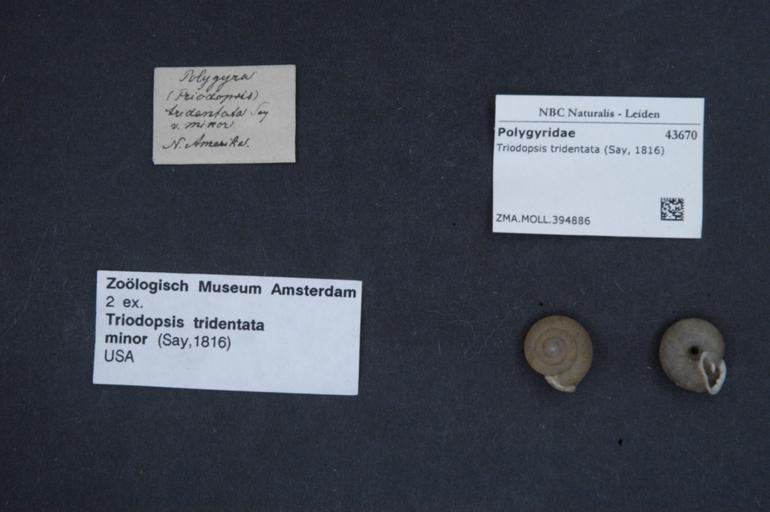 Keywords: Naturalis Biodiversity Center - ZMA.MOLL.394886 - Triodopsis tridentata (Say, 1816) - Polygyridae - Mollusc shell.jpeg artwork Dimensions artwork Document type Polygyridae subfamily Triodopsinae Triodopsis Individual count Infraspecific epithet Infraspecific rank Institution Naturalis Kind of unit artwork Kind of unit specimen shell Life stage Medium artwork Nomenclatural code Source institute Rijksmuseum van Natuurlijke Historie Leiden Scale the width of the text on the species/QR-code label is 38 mm Occurrence ID page Other fields Other versions artwork Permission license Naturalis donation CC-0 Mollusca Publication location Scientific name Triodopsis tridentata Say 1816 Scientific name authorship Say 1816 Source url http //bioportal naturalis nl Specific epithet tridentata State or province Subject keywords artwork Subject keywords publication Title artwork Title publication Type status Uploaded with GWToolset Naturalis_Biodiversity_Center_-_ZMA MOLL 394886_-_Triodopsis_tridentata_ Say _1816 _-_Polygyridae_-_Mollusc_shell http //medialib naturalis nl/file/id/ZMA MOLL 394886/format/large Molluscs at Naturalis from the Zoölogisch Museum Amsterdam Media donated by Naturalis Biodiversity Center Triodopsis tridentata Triodopsis