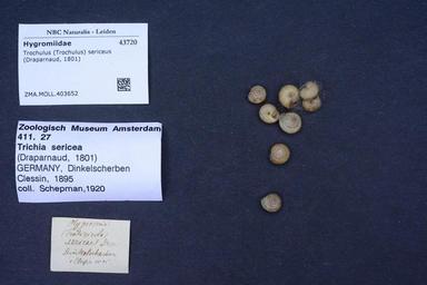 | Keywords: Naturalis Biodiversity Center - ZMA.MOLL.403652 - Trochulus (Trochulus) sericeus (Draparnaud, 1801) - Hygromiidae - Mollusc shell.jpeg artwork Dimensions artwork Document type Hygromiidae Trochulus Individual count Infraspecific epithet Infraspecific rank Institution Naturalis Kind of unit artwork Kind of unit specimen shell Life stage Medium artwork Nomenclatural code Source institute Rijksmuseum van Natuurlijke Historie Leiden Scale the width of the text on the species/QR-code label is 38 mm Occurrence ID page Other fields Other versions artwork Permission license Naturalis donation CC-0 Mollusca Publication location Scientific name Trochulus Trochulus sericeus Draparnaud 1801 Scientific name authorship Draparnaud 1801 Source url http //bioportal naturalis nl Specific epithet sericeus State or province Subject keywords artwork Subject keywords publication Title artwork Title publication Type status Uploaded with GWToolset Naturalis_Biodiversity_Center_-_ZMA MOLL 403652_-_Trochulus_ Trochulus _sericeus_ Draparnaud _1801 _-_Hygromiidae_-_Mollusc_shell http //medialib naturalis nl/file/id/ZMA MOLL 403652/format/large Molluscs at Naturalis from the Zoölogisch Museum Amsterdam Media donated by Naturalis Biodiversity Center Trochulus sericeus Trochulus |