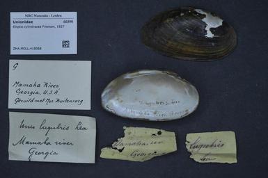 | Keywords: Naturalis Biodiversity Center - ZMA.MOLL.418068 - Elliptio cylindracea Frierson, 1927 - Unionidae - Mollusc shell.jpeg artwork Dimensions artwork Document type Unionidae subfamily Ambleminae Elliptio Individual count Infraspecific epithet Infraspecific rank Institution Naturalis Kind of unit artwork Kind of unit specimen shell Life stage Medium artwork Nomenclatural code Source institute Zoölogisch Museum Amsterdam Scale the width of the text on the species/QR-code label is 38 mm Occurrence ID page Other fields Other versions artwork Permission license Naturalis donation CC-0 Mollusca Publication location Scientific name Elliptio cylindracea Frierson 1927 Scientific name authorship Frierson 1927 Source url http //bioportal naturalis nl Specific epithet cylindracea State or province Subject keywords artwork Subject keywords publication Title artwork Title publication Type status Uploaded with GWToolset Naturalis_Biodiversity_Center_-_ZMA MOLL 418068_-_Elliptio_cylindracea_Frierson _1927_-_Unionidae_-_Mollusc_shell http //medialib naturalis nl/file/id/ZMA MOLL 418068/format/large Molluscs at Naturalis from the Zoölogisch Museum Amsterdam Media donated by Naturalis Biodiversity Center Elliptio cylindracea Elliptio |
