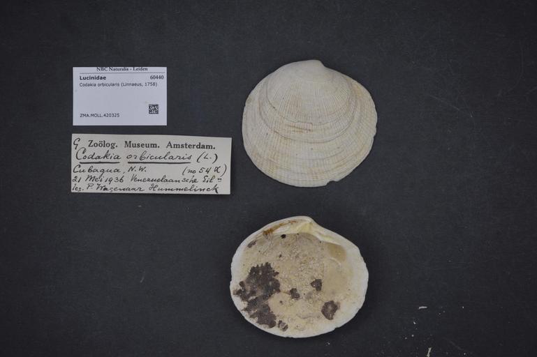 Keywords: Naturalis Biodiversity Center - ZMA.MOLL.420325 - Codakia orbicularis (Linnaeus, 1758) - Lucinidae - Mollusc shell.jpeg artwork Dimensions artwork Document type Lucinidae subfamily Lucininae Codakia Individual count Infraspecific epithet Infraspecific rank Institution Naturalis Kind of unit artwork Kind of unit specimen shell Life stage Medium artwork Nomenclatural code Source institute Zoölogisch Museum Amsterdam Scale the width of the text on the species/QR-code label is 38 mm Occurrence ID page Other fields Other versions artwork Permission license Naturalis donation CC-0 Mollusca Publication location Scientific name Codakia orbicularis Linnaeus 1758 Scientific name authorship Linnaeus 1758 Source url http //bioportal naturalis nl Specific epithet orbicularis State or province Subject keywords artwork Subject keywords publication Title artwork Title publication Type status Uploaded with GWToolset Naturalis_Biodiversity_Center_-_ZMA MOLL 420325_-_Codakia_orbicularis_ Linnaeus _1758 _-_Lucinidae_-_Mollusc_shell http //medialib naturalis nl/file/id/ZMA MOLL 420325/format/large Molluscs at Naturalis from the Zoölogisch Museum Amsterdam Media donated by Naturalis Biodiversity Center Codakia orbicularis Codakia |