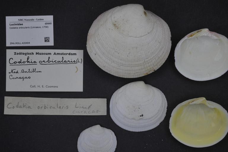 Keywords: Naturalis Biodiversity Center - ZMA.MOLL.420404 - Codakia orbicularis (Linnaeus, 1758) - Lucinidae - Mollusc shell.jpeg artwork Dimensions artwork Document type Lucinidae subfamily Lucininae Codakia Individual count Infraspecific epithet Infraspecific rank Institution Naturalis Kind of unit artwork Kind of unit specimen shell Life stage Medium artwork Nomenclatural code Source institute Zoölogisch Museum Amsterdam Scale the width of the text on the species/QR-code label is 38 mm Occurrence ID page Other fields Other versions artwork Permission license Naturalis donation CC-0 Mollusca Publication location Scientific name Codakia orbicularis Linnaeus 1758 Scientific name authorship Linnaeus 1758 Source url http //bioportal naturalis nl Specific epithet orbicularis State or province Subject keywords artwork Subject keywords publication Title artwork Title publication Type status Uploaded with GWToolset Naturalis_Biodiversity_Center_-_ZMA MOLL 420404_-_Codakia_orbicularis_ Linnaeus _1758 _-_Lucinidae_-_Mollusc_shell http //medialib naturalis nl/file/id/ZMA MOLL 420404/format/large Molluscs at Naturalis from the Zoölogisch Museum Amsterdam Media donated by Naturalis Biodiversity Center Codakia orbicularis Codakia |