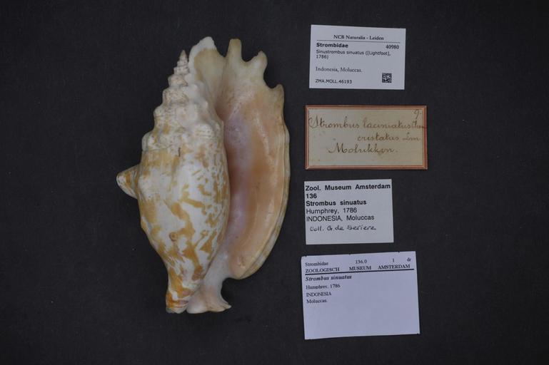 | Keywords: Naturalis Biodiversity Center - ZMA.MOLL.46193 - Sinustrombus sinuatus (-Lightfoot-, 1786) - Strombidae - Mollusc shell.jpeg artwork Dimensions artwork Document type Strombidae Sinustrombus Individual count Infraspecific epithet Infraspecific rank Institution Naturalis Kind of unit artwork Kind of unit specimen shell Life stage Indonesia Moluccas Medium artwork Nomenclatural code Source institute Zoölogisch Museum Amsterdam Scale the width of the text on the species/QR-code label is 38 mm Occurrence ID page Other fields Other versions artwork Permission license Naturalis donation CC-0 Mollusca Publication location Scientific name Sinustrombus sinuatus Lightfoot 1786 Scientific name authorship Lightfoot 1786 Source url http //bioportal naturalis nl Specific epithet sinuatus State or province Moluccas Subject keywords artwork Subject keywords publication Title artwork Title publication Type status Uploaded with GWToolset Naturalis_Biodiversity_Center_-_ZMA MOLL 46193_-_Sinustrombus_sinuatus_ Lightfoot _1786 _-_Strombidae_-_Mollusc_shell http //medialib naturalis nl/file/id/ZMA MOLL 46193/format/large Molluscs at Naturalis from the Zoölogisch Museum Amsterdam Media donated by Naturalis Biodiversity Center Sinustrombus sinuatus Sinustrombus |