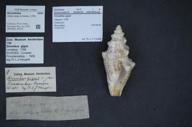 Keywords: Naturalis Biodiversity Center - ZMA.MOLL.50719 - Lobatus gigas (Linnaeus, 1758) - Strombidae - Mollusc shell.jpeg artwork Dimensions artwork Document type Strombidae Lobatus Individual count Infraspecific epithet Infraspecific rank Institution Naturalis Kind of unit artwork Kind of unit specimen shell Life stage Curaçao West Indies Piscadera Bay; viii-1935 Medium artwork Nomenclatural code Source institute Zoölogisch Museum Amsterdam Scale the width of the text on the species/QR-code label is 38 mm Occurrence ID page Other fields Other versions artwork Permission license Naturalis donation CC-0 Mollusca Publication location Scientific name Lobatus gigas Linnaeus 1758 Scientific name authorship Linnaeus 1758 Source url http //bioportal naturalis nl Specific epithet gigas State or province Curaçao Subject keywords artwork Subject keywords publication Title artwork Title publication Type status Uploaded with GWToolset Naturalis_Biodiversity_Center_-_ZMA MOLL 50719_-_Lobatus_gigas_ Linnaeus _1758 _-_Strombidae_-_Mollusc_shell http //medialib naturalis nl/file/id/ZMA MOLL 50719/format/large Molluscs at Naturalis from the Zoölogisch Museum Amsterdam Media donated by Naturalis Biodiversity Center Eustrombus gigas Lobatus |