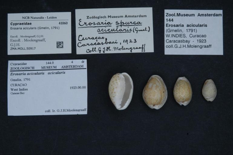 Keywords: Naturalis Biodiversity Center - ZMA.MOLL.50917 - Erosaria acicularis (Gmelin, 1791) - Cypraeidae - Mollusc shell.jpeg artwork Dimensions artwork Document type Cypraeidae subfamily Erosariinae Erosaria Individual count Infraspecific epithet Infraspecific rank Institution Naturalis Kind of unit artwork Kind of unit specimen shell Life stage Curaçao West Indies Caracas Bay; 1923 Medium artwork Nomenclatural code Source institute Zoölogisch Museum Amsterdam Scale the width of the text on the species/QR-code label is 38 mm Occurrence ID page Other fields Other versions artwork Permission license Naturalis donation CC-0 Mollusca Publication location Scientific name Erosaria acicularis Gmelin 1791 Scientific name authorship Gmelin 1791 Source url http //bioportal naturalis nl Specific epithet acicularis State or province Curaçao Subject keywords artwork Subject keywords publication Title artwork Title publication Type status Uploaded with GWToolset Naturalis_Biodiversity_Center_-_ZMA MOLL 50917_-_Erosaria_acicularis_ Gmelin _1791 _-_Cypraeidae_-_Mollusc_shell http //medialib naturalis nl/file/id/ZMA MOLL 50917/format/large Molluscs at Naturalis from the Zoölogisch Museum Amsterdam Media donated by Naturalis Biodiversity Center Erosaria acicularis Erosaria |